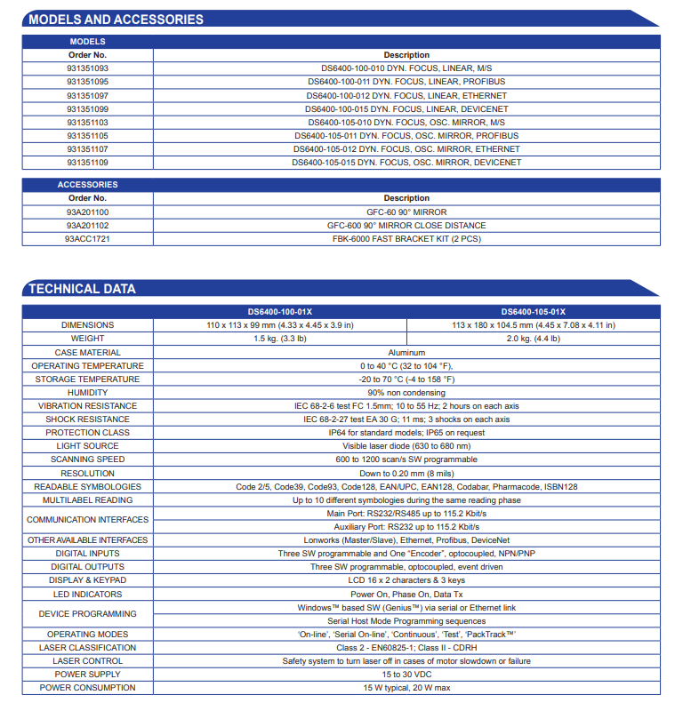 DS6400 用于制造業(yè)應(yīng)用的高性能工業(yè)激光掃描器(長(zhǎng)距離