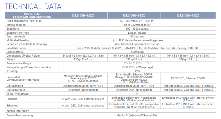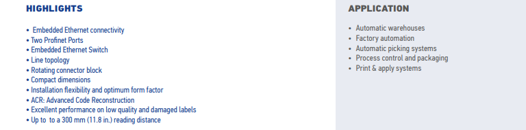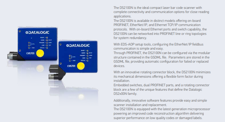 DS2100N工業(yè)激光條碼閱讀器充分發(fā)揮DATALOGIC得利捷 Automation在1D條碼閱讀領(lǐng)域40年的技術(shù)經(jīng)驗(yàn),滿足倉(cāng)儲(chǔ),車間和OEM應(yīng)用的苛刻應(yīng)用需求。配備無(wú)限的連接選項(xiàng),包括PROFINET, EtherNet/IP和以太網(wǎng)TCP/IP通信協(xié)議,DS2100N是短距離閱讀的選擇。