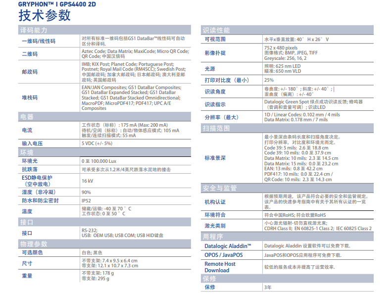 Gryphon? GPS4490區(qū)域條碼閱讀器外形緊湊時(shí)尚,是一個(gè)完整的2D演示掃描器。小巧的外形使GPS4400成為小空間環(huán)境的理想解決方案。它的可調(diào)節(jié)底座,能讓掃描器在不同角度固定,使條碼掃描更簡單直觀。在不需要的情況下,底座亦可輕松拆卸,進(jìn)一步減小掃描器的整體尺寸。GPS4400全向影像式柜臺上條碼掃描器(小平臺)可輕松掃描手機(jī)、PDA 和計(jì)算機(jī)顯示屏上的條碼,此外,它還具有DATALOGIC移動(dòng)感應(yīng)技術(shù)和靈敏的讀取能力,對低質(zhì)量和破損的條碼具有極佳的讀取表現(xiàn)。Gryphon?GPS4490采用Datalogic的“綠點(diǎn)”技術(shù),通過“易于閱讀”指示燈,直觀地反映條形碼讀取的正確性,并支持高級功能,例如圖像捕獲/簽名和掃描文檔的捕獲。 POS銷售結(jié)束時(shí)對其他設(shè)備的需求。