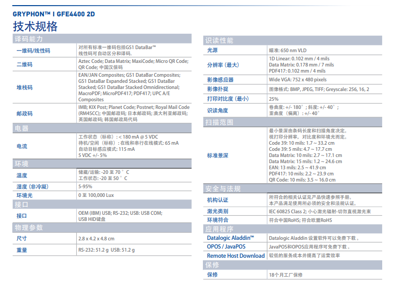 GFS44002DOEM掃描模塊憑借出色的短距離掃描特性,寬視角,高移動(dòng)性和快速讀取功能,為用戶提供了出色的解碼和讀取損壞條形碼的性能。與所有Gryphon掃描儀一樣,GFS4400掃描模塊采用“綠點(diǎn)”技術(shù),可提供有效的讀取反饋。