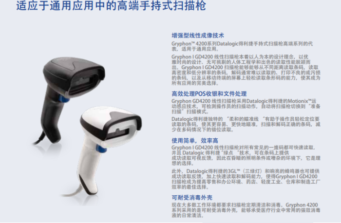 Gryphon 4200系列包括可耐受消毒外殼,能夠承受醫(yī)療衛(wèi)生環(huán)境中常用消毒液的日常清潔。
