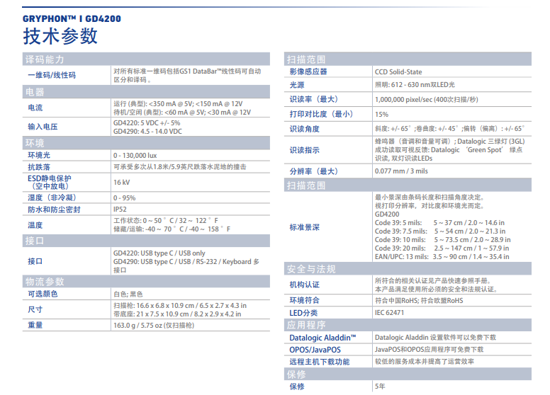 Gryphon 4200系列包括可耐受消毒外殼,能夠承受醫(yī)療衛(wèi)生環(huán)境中常用消毒液的日常清潔。