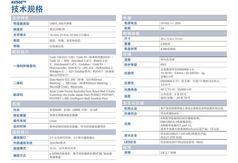 AV500是一款創(chuàng)新型二維圖像閱讀器,適用于高速運輸系統(tǒng),機場行李處理系統(tǒng)以及靜態(tài)閱讀應(yīng)用,為物流應(yīng)用領(lǐng)域的全新標(biāo)桿產(chǎn)品