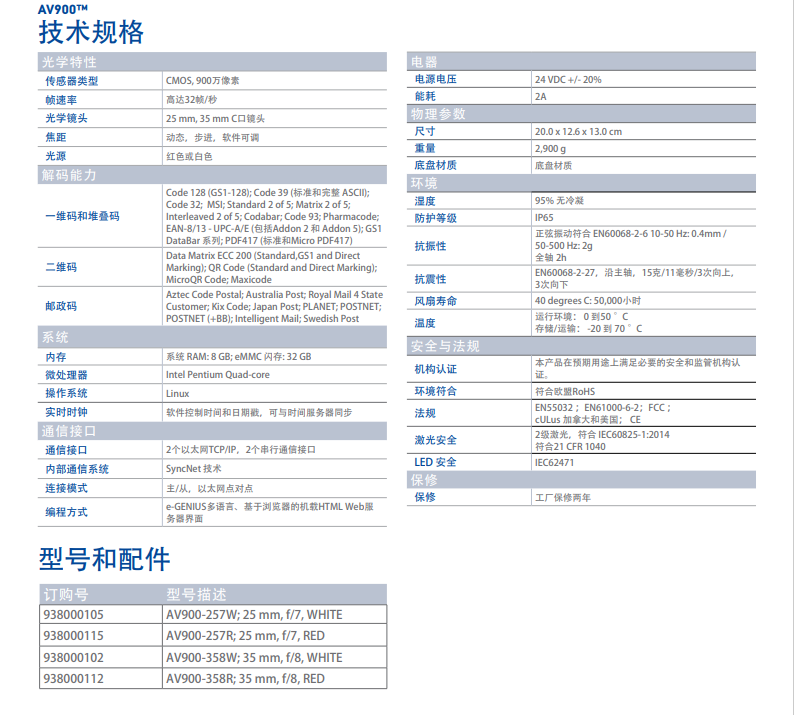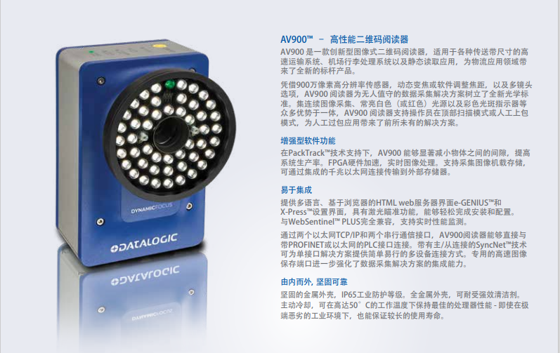 AV900 工業(yè)條碼掃描器 高性能工業(yè)條碼掃描器,帶有一個900萬像素的二維自動對焦相機,用于物流與運輸應(yīng)用。