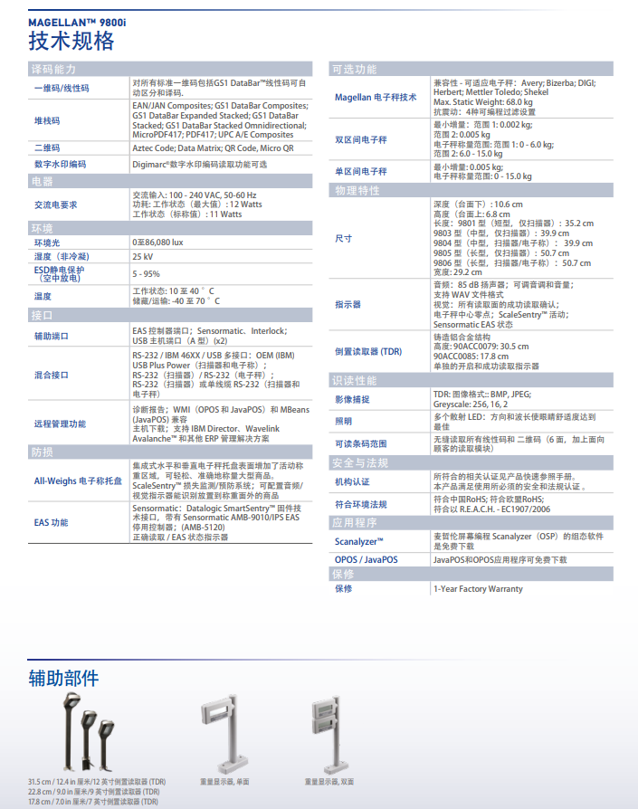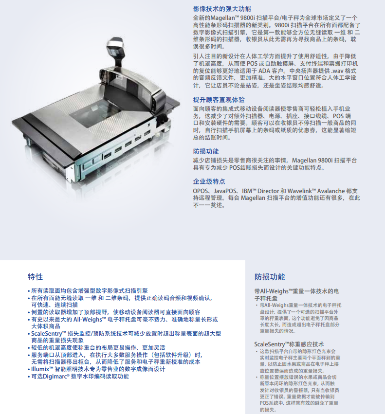 9800i影像式掃描平臺,機罩高度低,可以讀取1D、2D和Digimarc?條碼分類