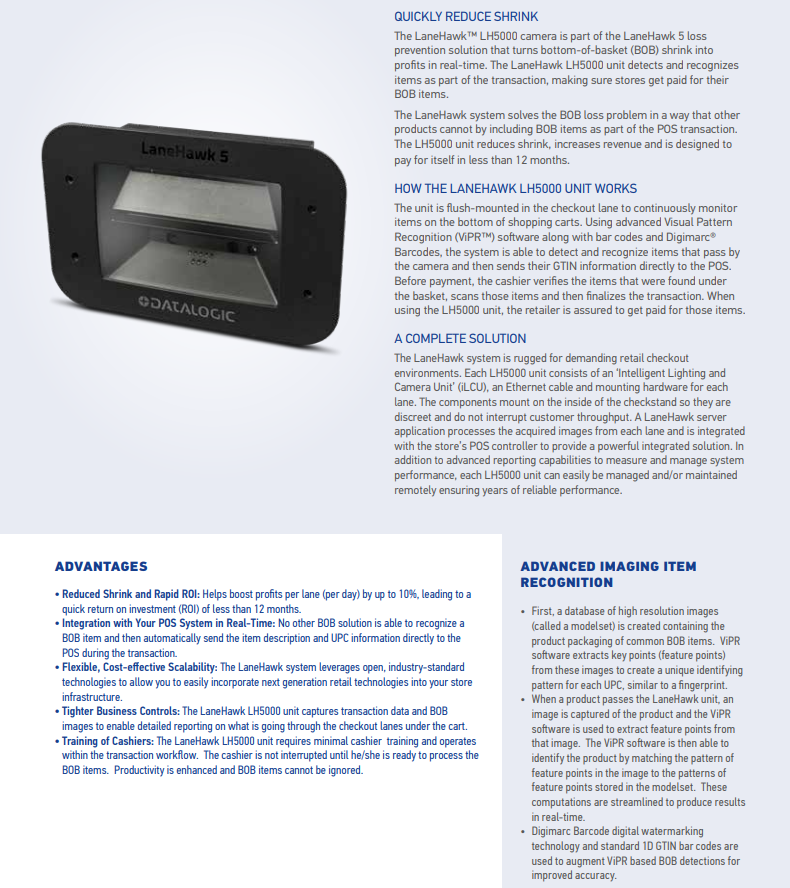 LaneHawk LH5000 一種防損解決方案,可以檢測并識別購物籃底部的商品,確保將其添加到購物清單中,以增加商店利潤。