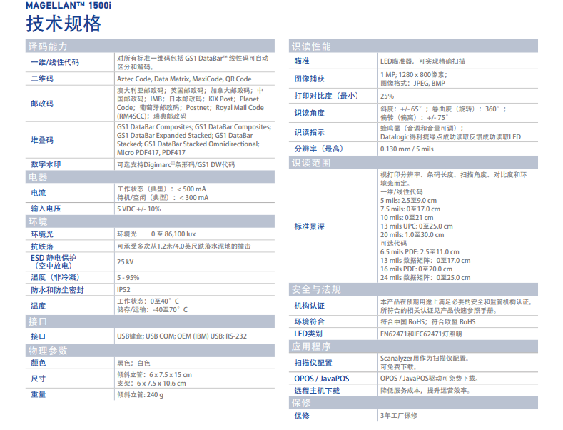 Magellan 1500i-用于各種應(yīng)用的高性能演示型掃描器