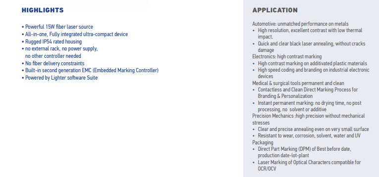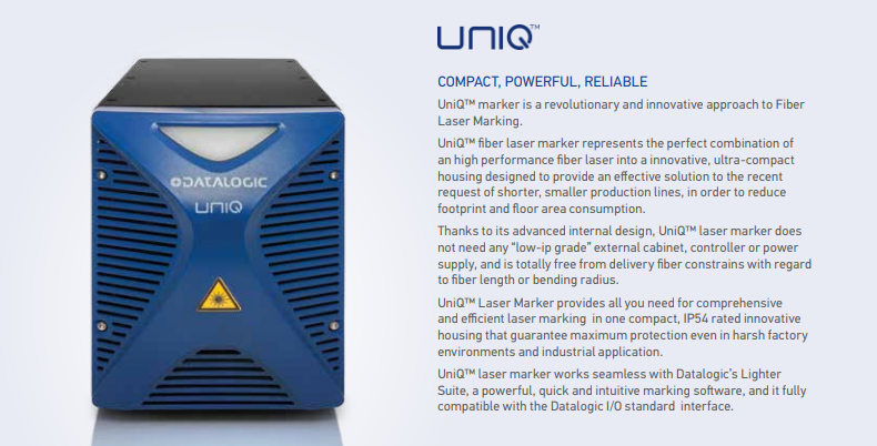 UniQ? 是首個(gè)基于光纖激光技術(shù)的超緊湊一體型激光打標(biāo)系統(tǒng)。緊湊的尺寸,堅(jiān)固的IP54級(jí)外殼,完全沒(méi)有外部控制器和光纖傳輸電纜,UniQ? 激光打標(biāo)機(jī)實(shí)現(xiàn)了真正的與眾不同。